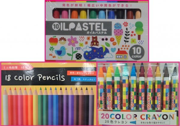 - 【送料無料 選べる 3点 オイルパステル10色,色鉛筆18色,クレヨン20色】★ミニ コンパクト:ぬりえ スケッチ 絵画 美術 漫画 イラスト 塗り絵