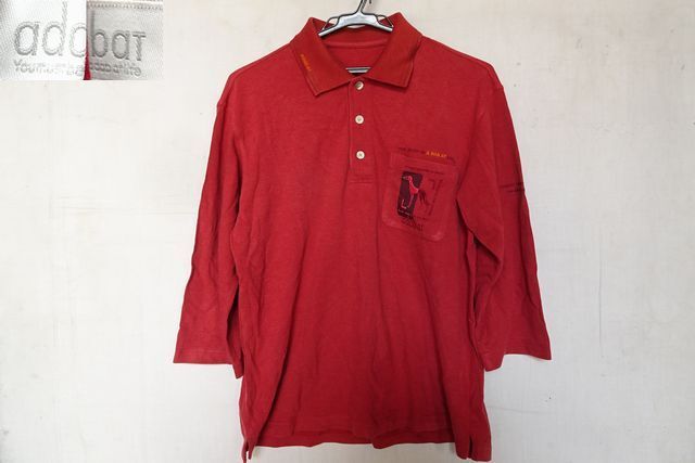 - adabat/アダバット/7分袖ポロシャツ/ゴルフウェア/鹿の子素材/左胸ポケット/ししゅう/裾サイドスリット/濃いめ赤/レッド(5/7R7)