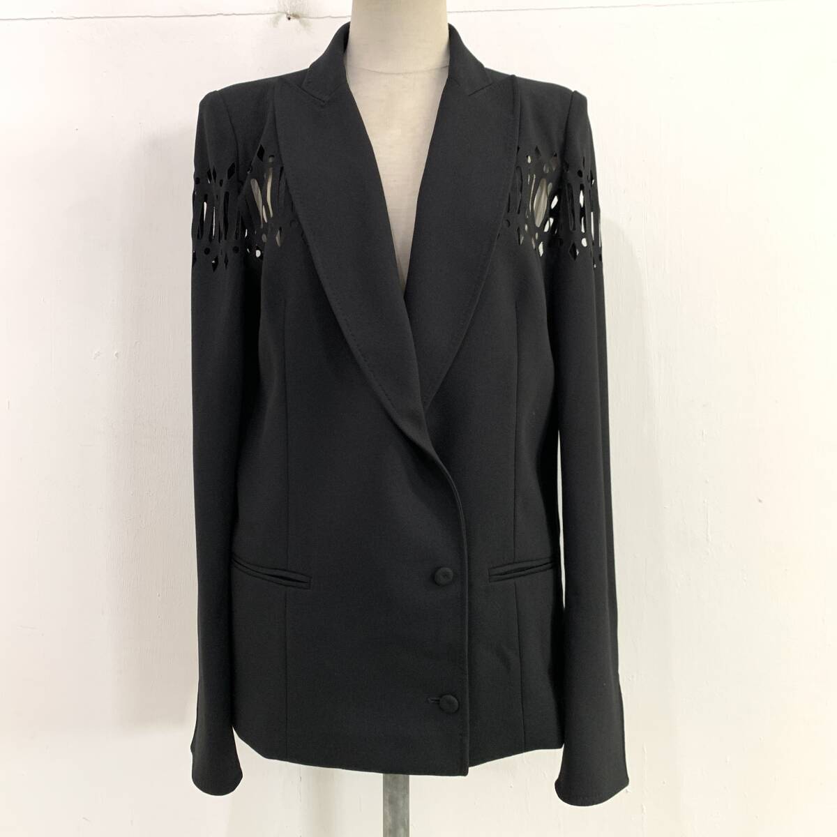 > ☆GIANFRANCO FERRE ジャンフランコフェレ Vintage レーザーカットデザイン テーラードジャケット ブラック size42【送料一律/同梱可能】C
