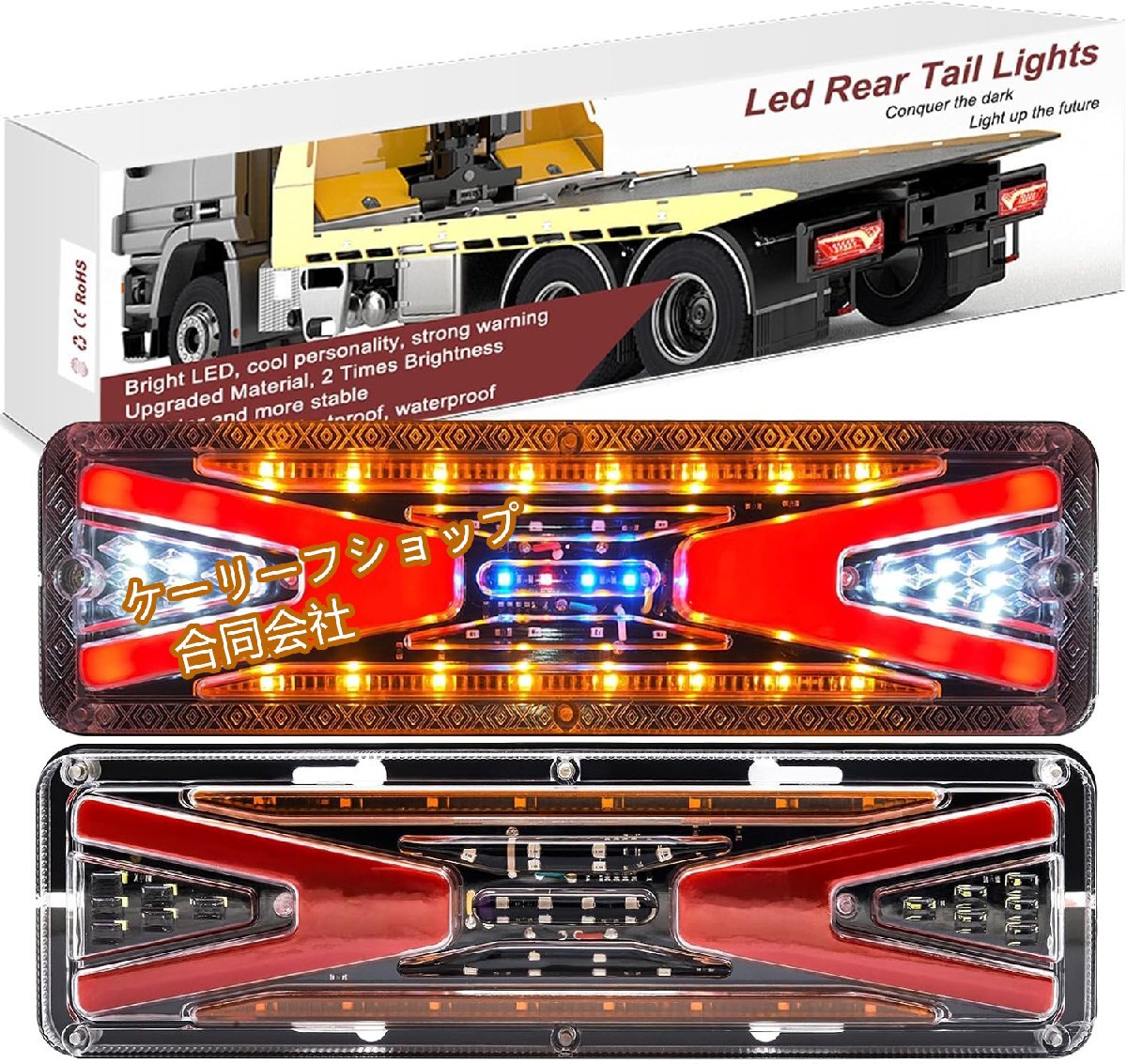 - 24V 4色LEDテールランプ(赤黄白青)シーケンシャルウィンカー付 大型車両用 ブレーキ/ストップ/テールライト 車検対応 2個組