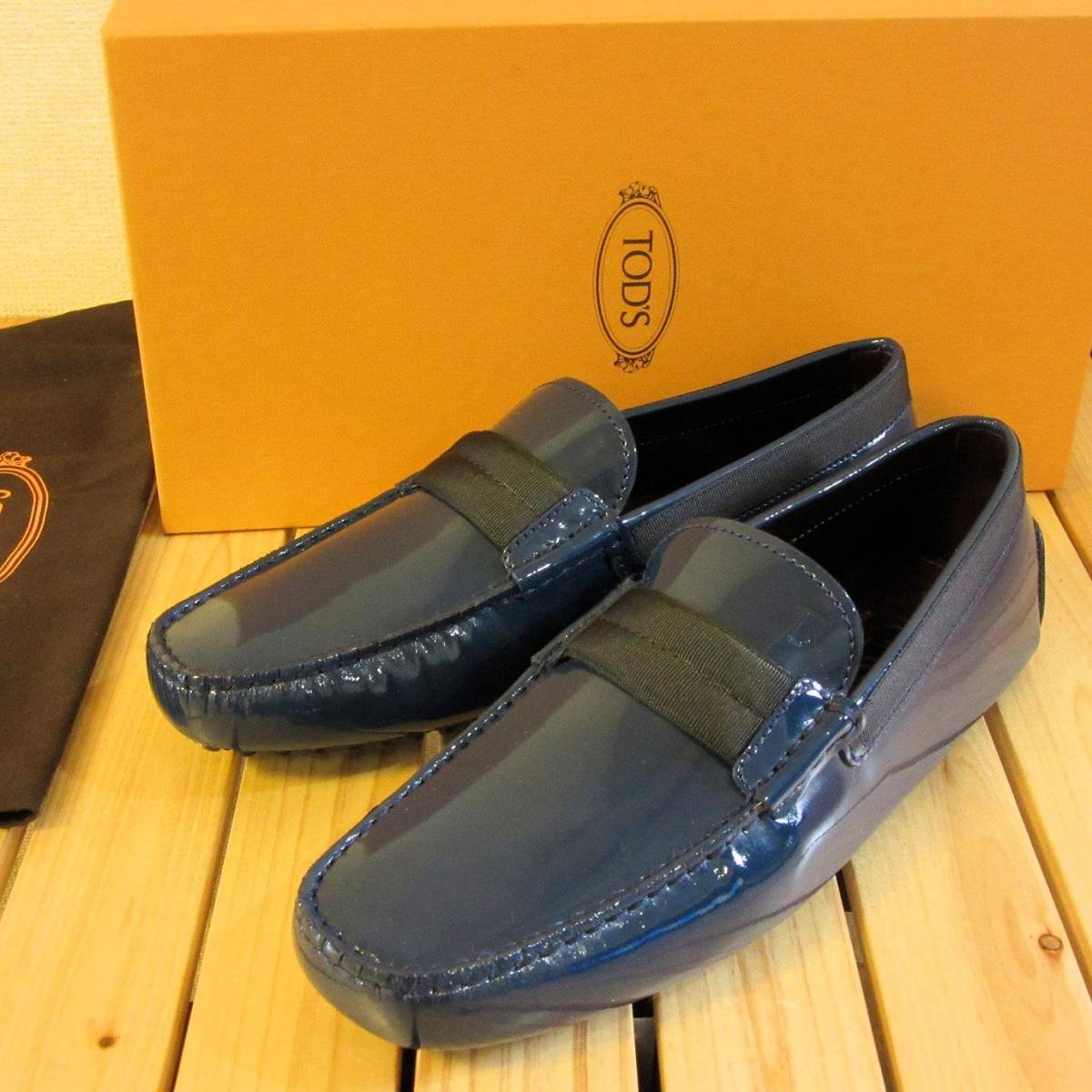 > 新品 TOD'S トッズ イタリア製 メンズ ゴンミーニ ドライビングシューズ ローファー エナメル パテント 青 ブルー 革靴 UK7 26cm