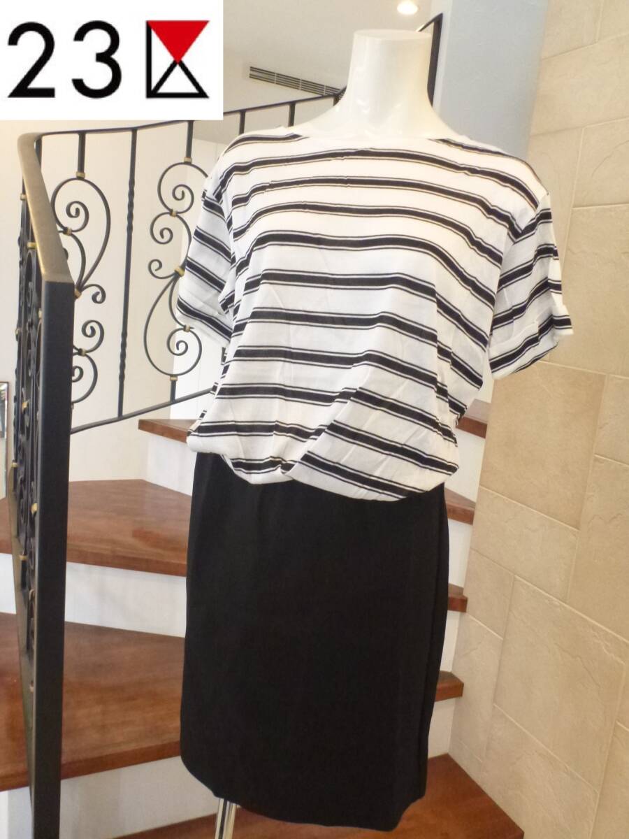- 2万 新品 23区★オンワード樫山 白×黒 異素材 ワンピース 38 M相当 半袖