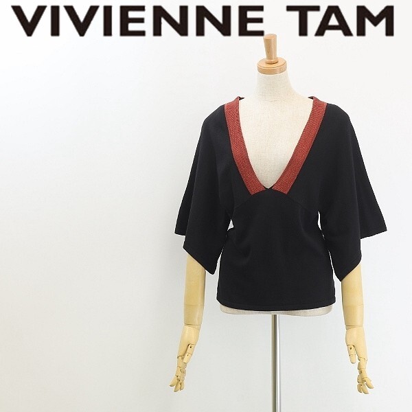 - ◆VIVIENNE TAM ヴィヴィアンタム ワイドスリーブ コットン ニット トップス 黒 ブラック×ブラウン 0