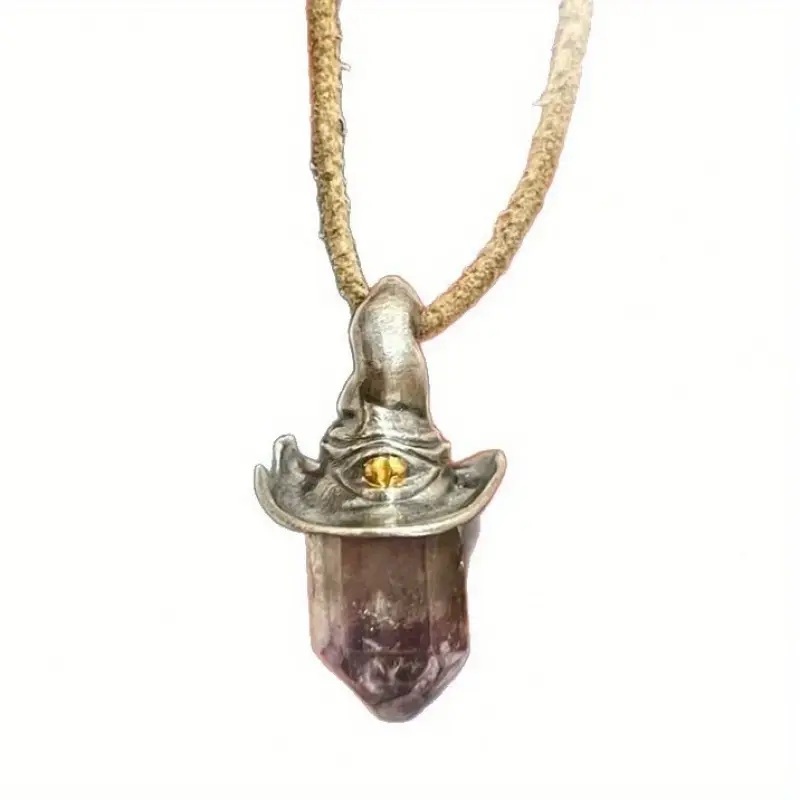 - アメジスト付レトロウィッチハットペンダント職人技の天使が宿ったネックレスですアクセサリー好きオススメ人気パワーストーンでは癒しです
