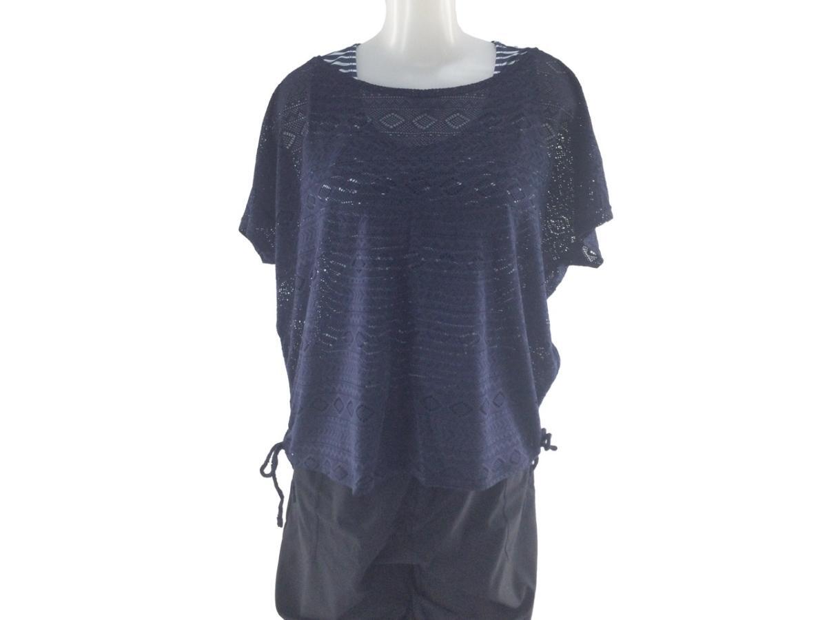- レディース水着 4点セット 水陸両用 カーゴパンツ付き 大きいサイズ 4L ボーダー柄 ネイビー