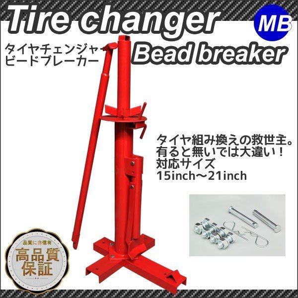 - 【送料無料】タイヤチェンジャー 兼手動ビードブレーカー 15~21インチ対応 ※ビードブレーカー機能付きで交換作業が短縮!! 4輪2輪に