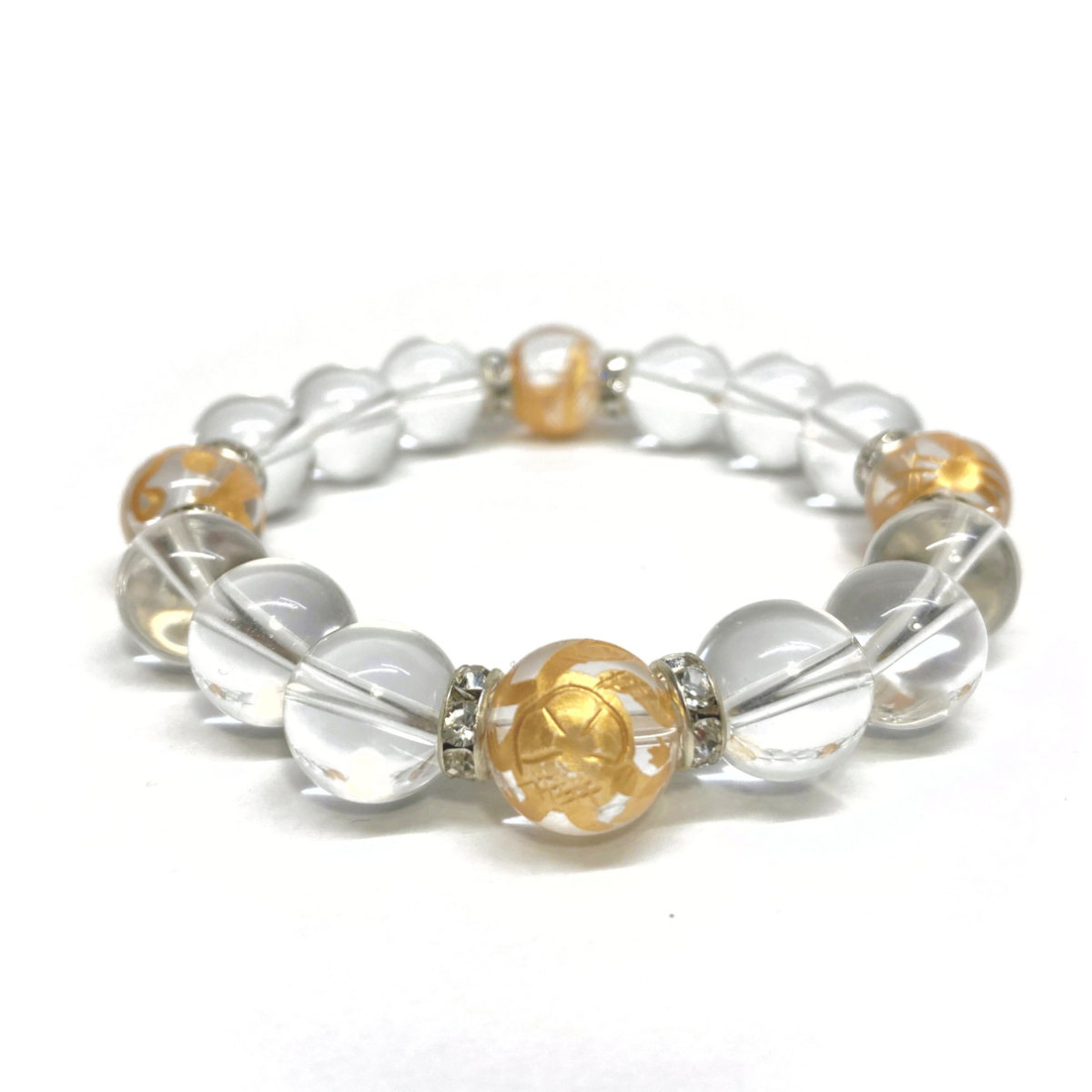 - 四神獣金彫水晶×水晶 12mm パワーストーン ブレスレット天然石 青龍 白虎 玄武 朱雀 運気上昇 開運 金運 健康 お守り 四神獸 四神相応 S
