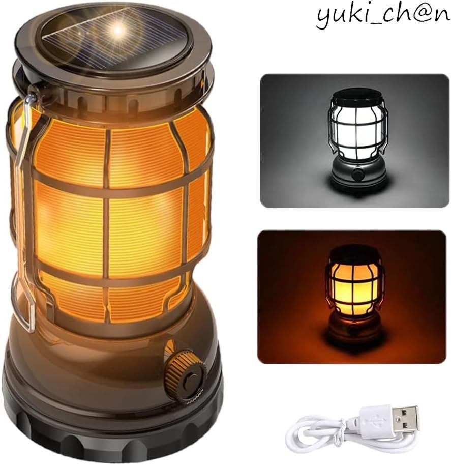 - ランタン USB充電式 ソーラー充電 高輝度 1000ルーメン 軽量 キャンプランタン アウトドア 登山 夜釣り 防災 停電 緊急 非常用 ブラック