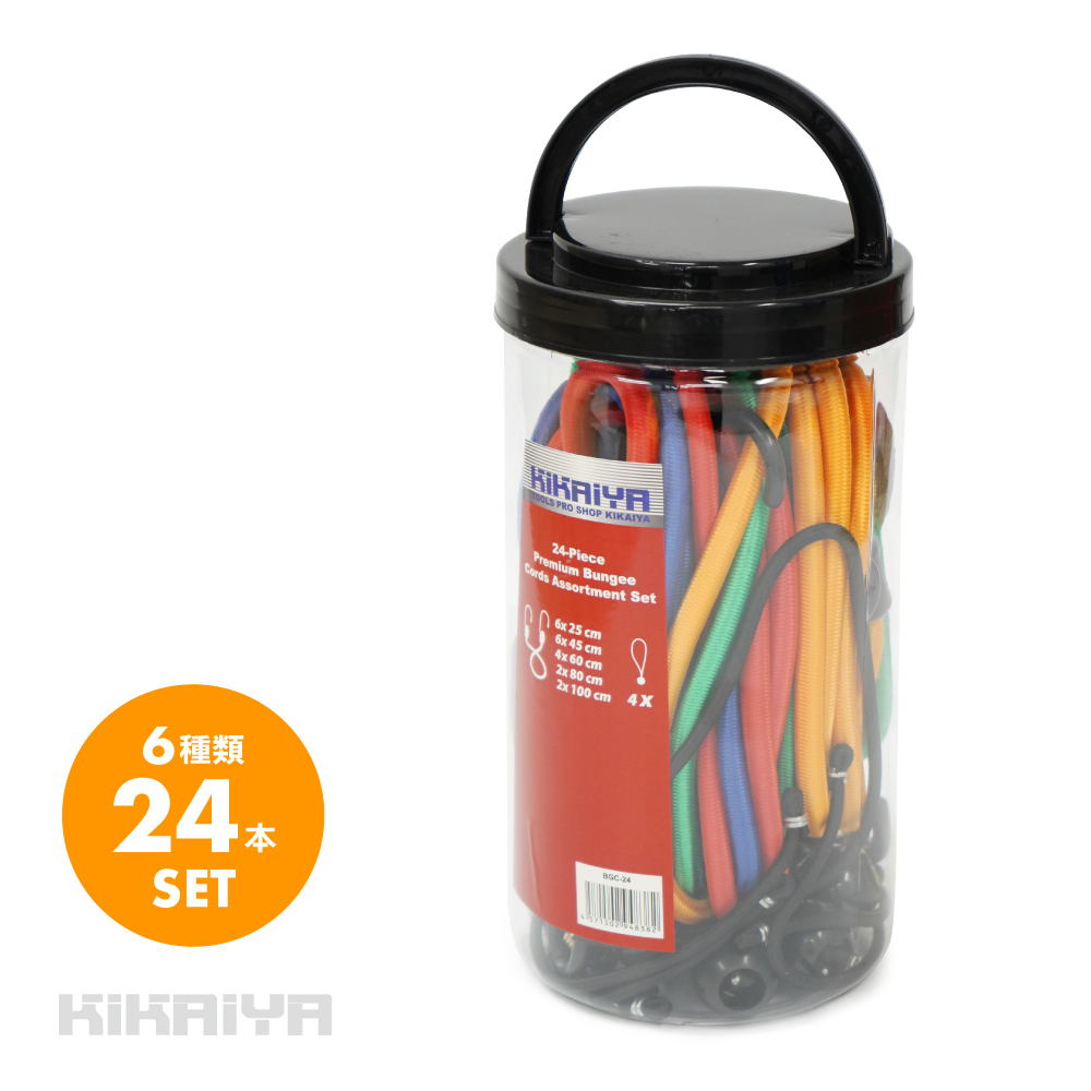- バンジーコード 24本 セット ゴム バンド フック 6種類 20~100cm UV耐性 ショックコード アウトドア キャンプ