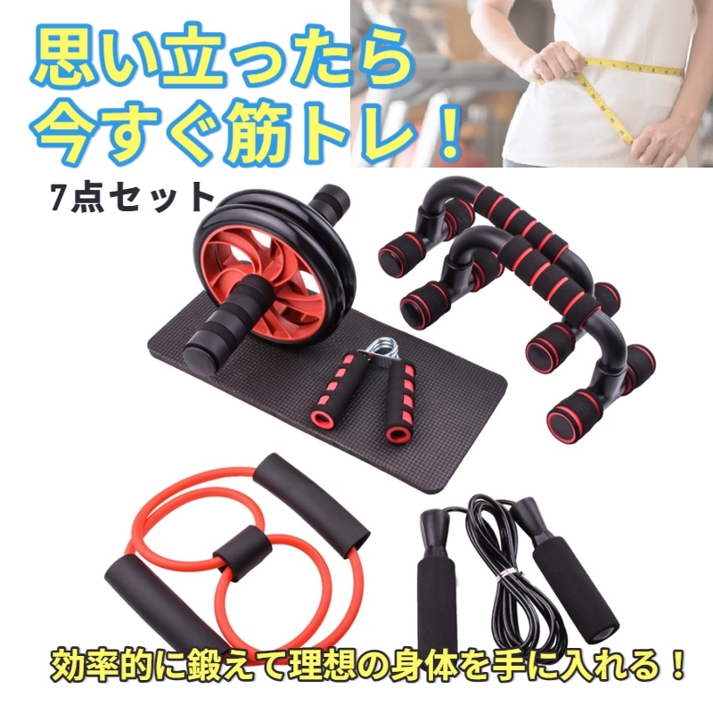 - 自宅トレーニングセット フィットネス 多機能 7点セット レッド