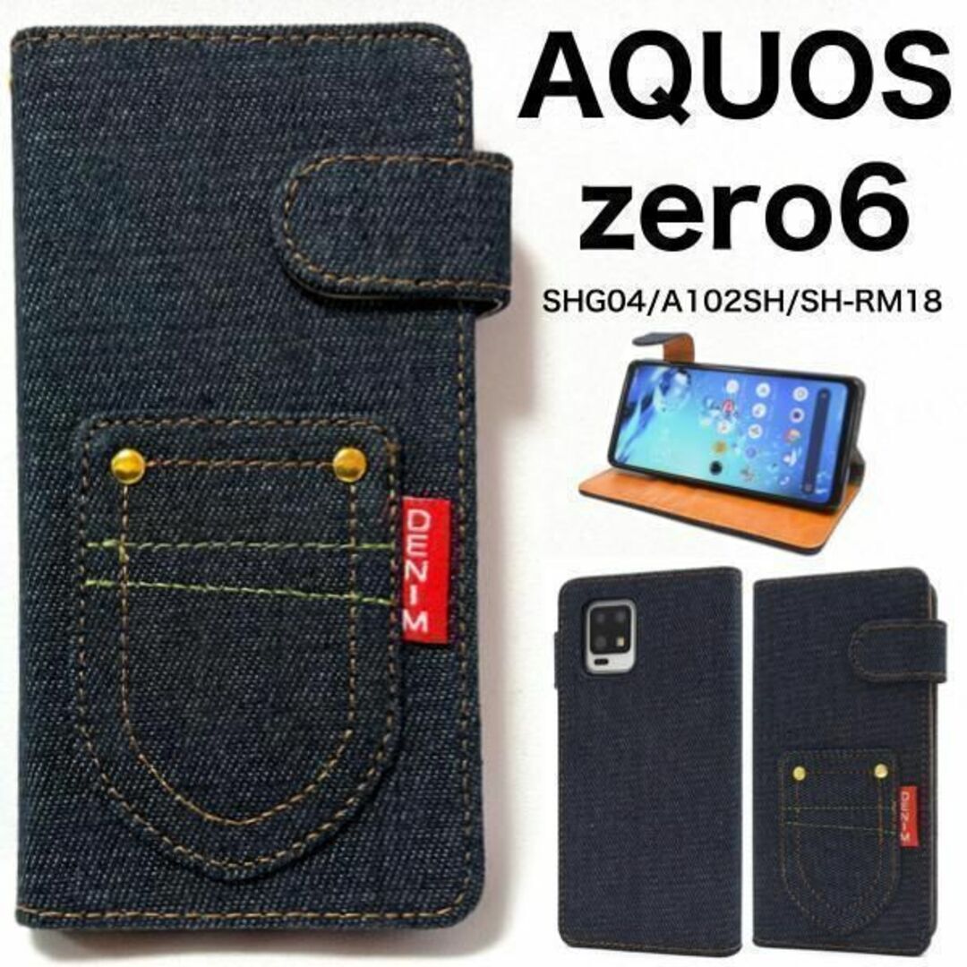 > AQUOS zero6 SHG04/A102SH デニム柄 手帳型ケース /アクオススマホケース