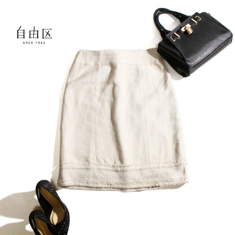 - 美品 ジユウク 自由区 株) オンワード樫山 春 夏 フォーマル フリンジ ラメツイードスカート 11号 40 ライトベージュ オフィス セレモニー