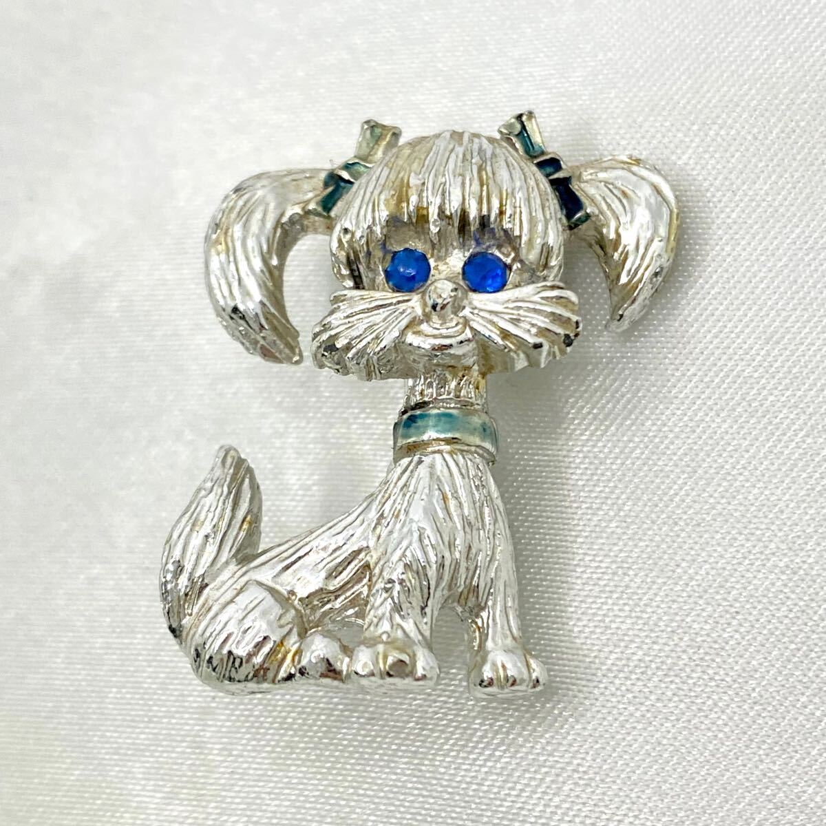 - GERRYS 犬 モチーフ ブローチ ブルーアイ × シルバーカラー ヴィンテージ vintage アクセサリー 装飾品