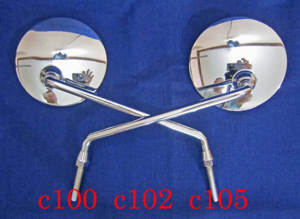 - 旧車 φ8mm HONDA ホンダ用 初期型スーパーカブ C100 C70 C50 モンキー 等 クラシック デザイン 丸 ミラー(社外部品)