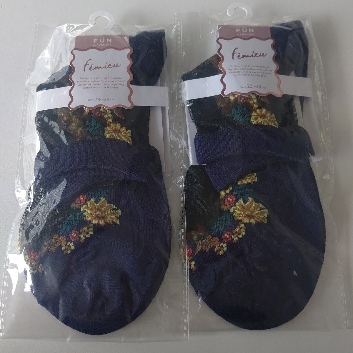 - 新品未使用 福助 FUN フェミュウ 婦人靴下 2足セット 23~24cm ネイビー