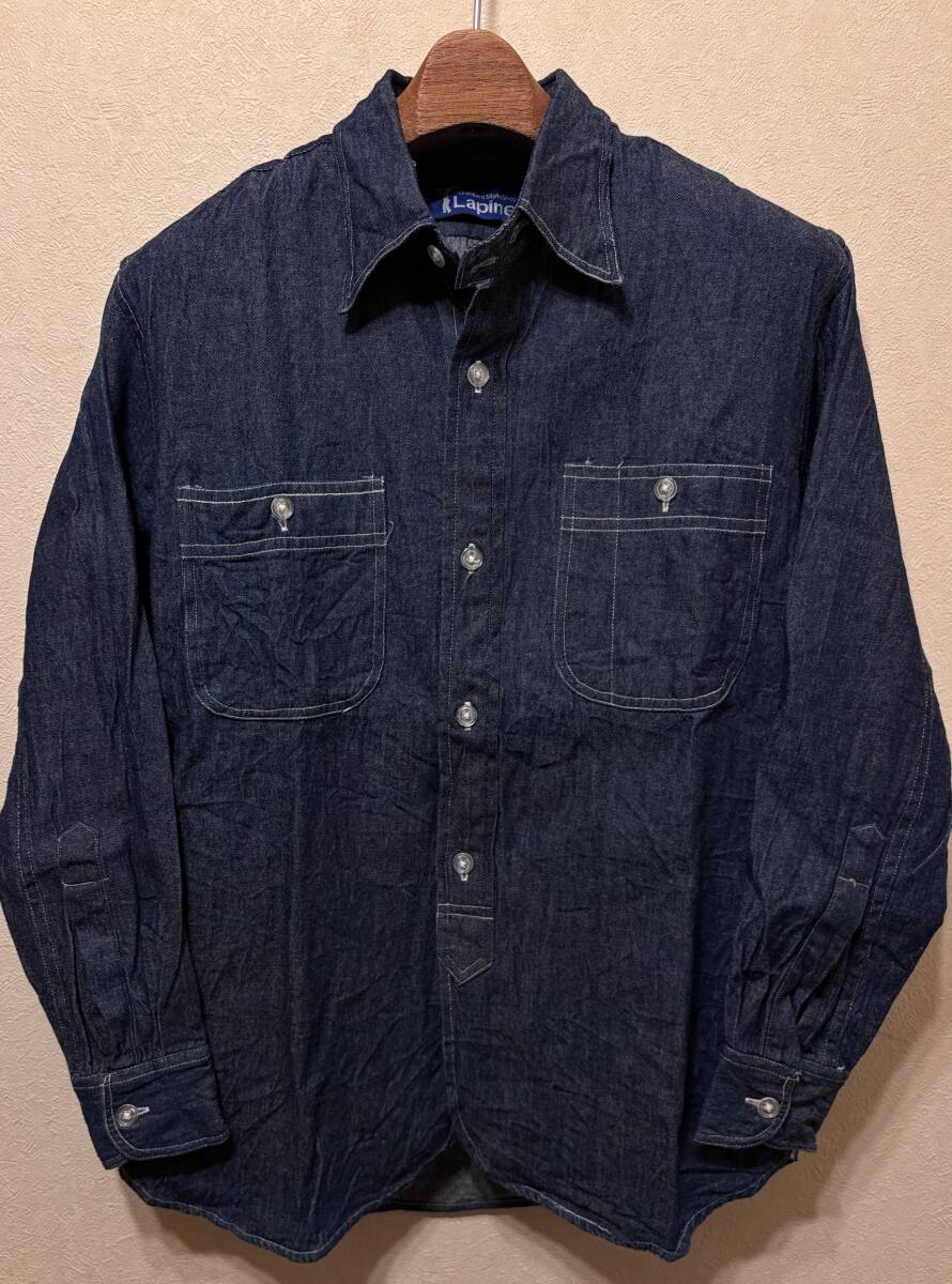 - 美品チンスト裾マチ付き90sオールドLapineデニムシャツSライトオンス濃紺インディゴUSNビンテージ復刻モデル90年代ラピーヌ(デッドストック