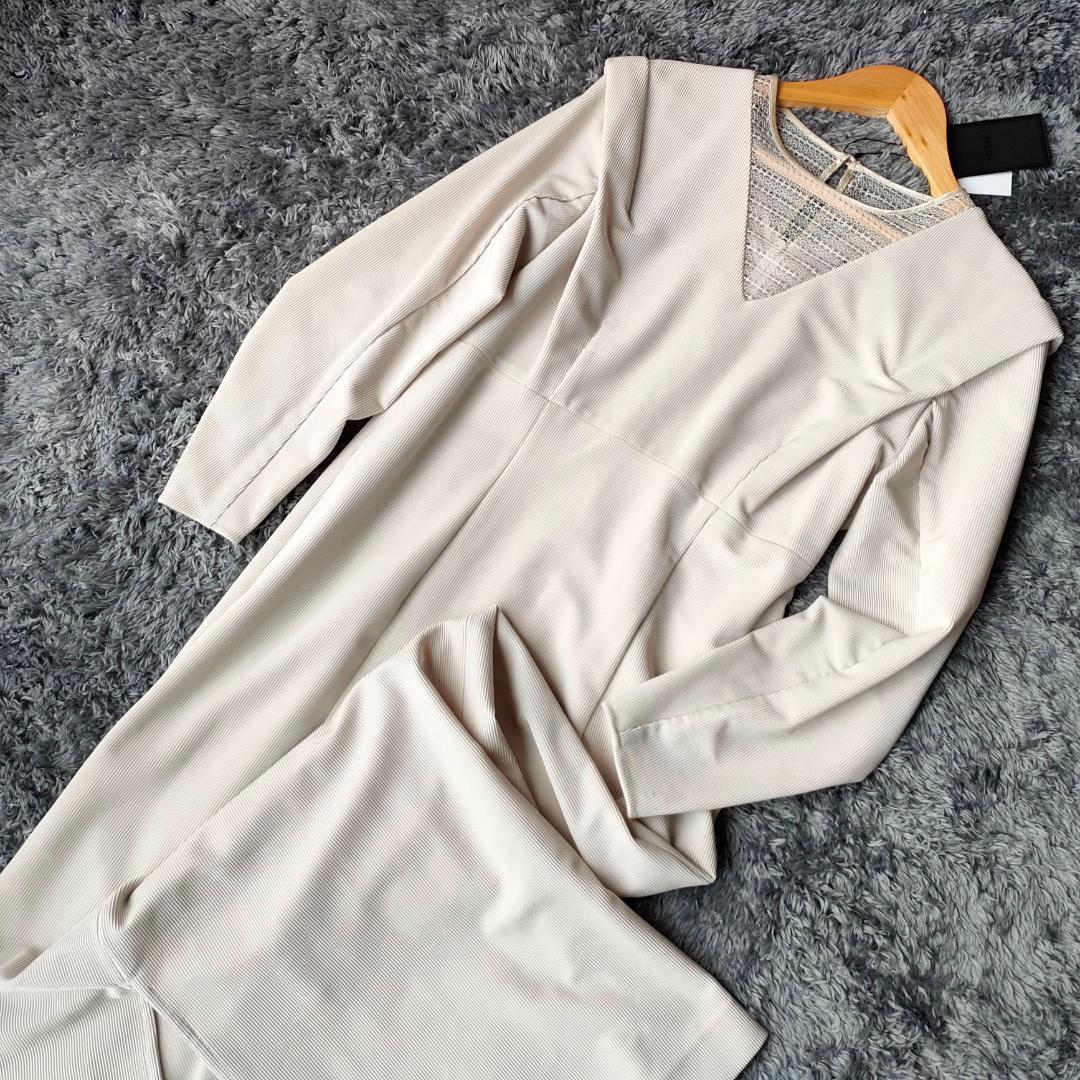 - タグ付き未使用 NINE ナイン オーバーショルダードレス レース リブ M 1 ロングワンピース