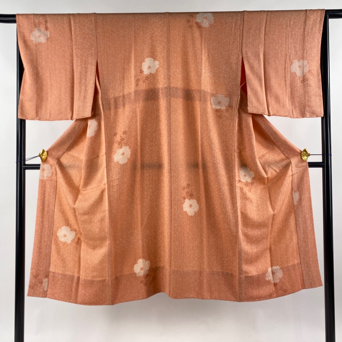 > 【在庫一掃】 長襦袢 身丈128cm 裄丈63cm S 梅 花 サーモンピンク 正絹 美品 秀品 【中古】