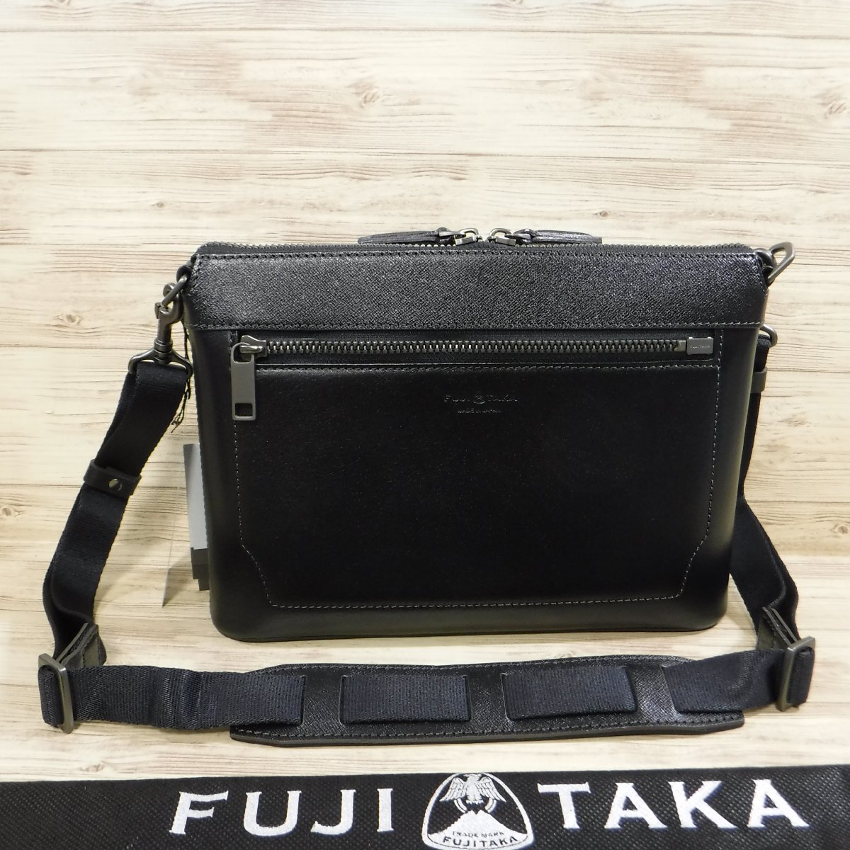 - YY158 フジタカ 定価3万3000円 新品 2WAY 黒 レザーショルダーバッグ 牛革 クラッチバッグ兼用 エキストラ 659121 FUJITAKA ブラック