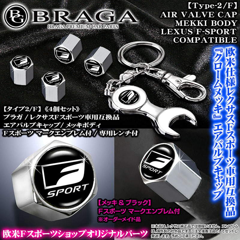 - レクサス Fスポーツ/メッキボディ/エアバルブキャップ/互換品/Fスポーツマーク エンブレム付/タイプ2/F/4個/レンチ付/欧米仕様