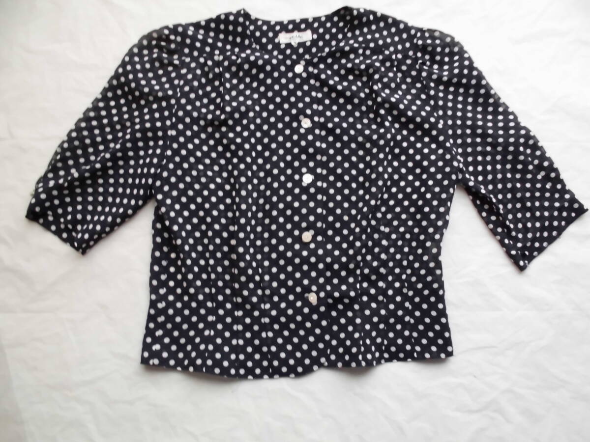 - TIENNE NEW ROMAN/TOKYO★ネイビーカラーのドット模様が可愛い五分袖位のブラウストップス★9号★美品★
