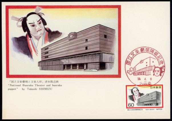 - H146 【マキシムカード】国立文楽劇場開場記念[大阪南/59.4.6/切手普及協会]