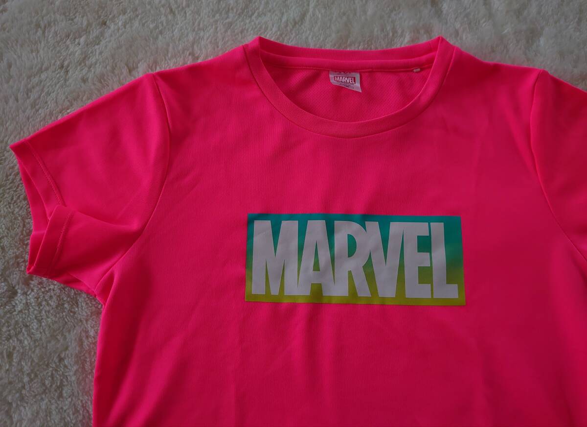 > MARVEL*マーベル*半袖カットソー*速乾*蛍光ピンク*半袖T*160cm*美品*女の子*