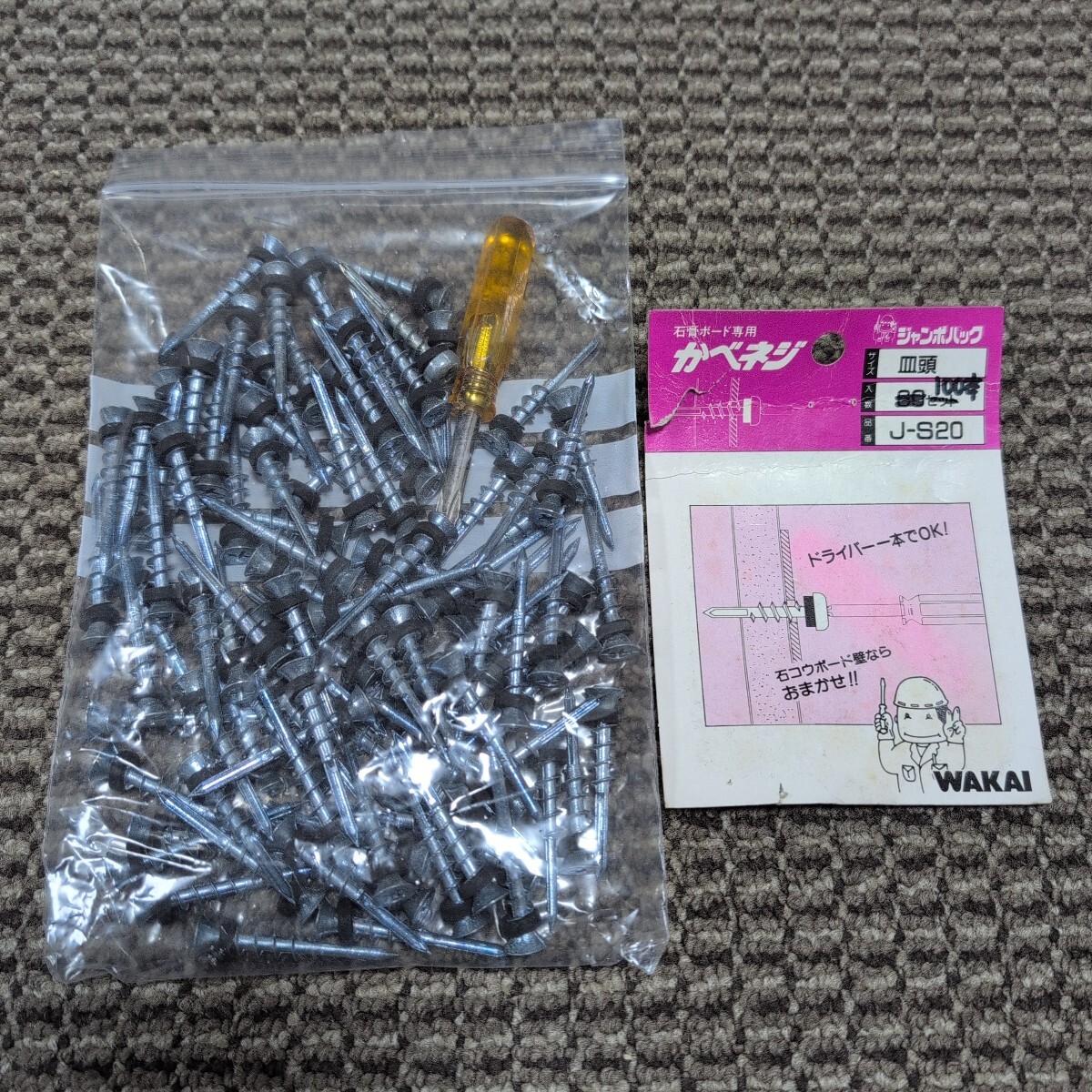 > ジャンク品/長期保管品/WAKAI/若井産業/J-S20/かべネジ/石膏ボード用/ボードネジ/軽量物用/皿頭Φ6.5mm/1P100本入り/専用ドライバー付き