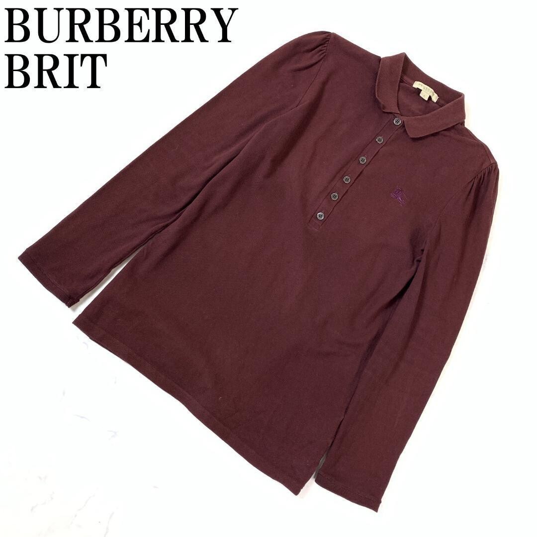 - LA5808 バーバリーブリット 長袖ポロシャツ BURBERRY BRIT ワンポイントブランド刺 ハーフボタン コットン 赤茶色ワインレッド S