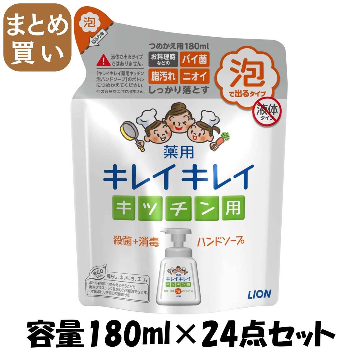 - 【まとめ買い】キレイキレイ薬用キッチン泡ハンドソープ 替え 180ml 容量180ML×24点セット ライオン ハンドソープ
