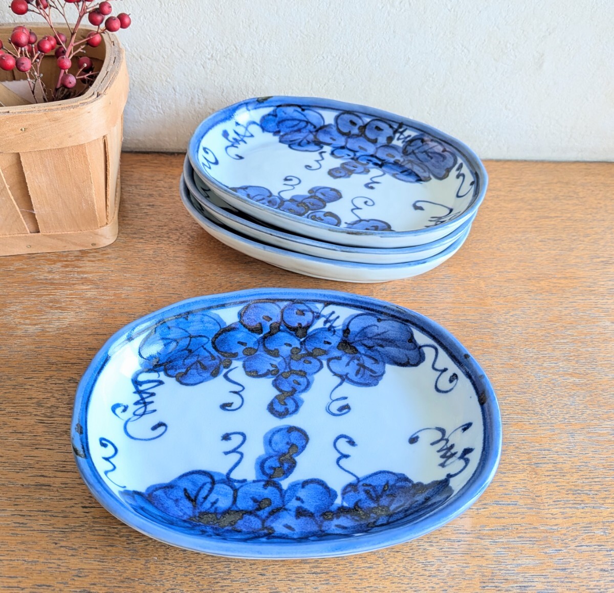 - 有田焼 楕円皿 ぶどう柄 皿 4枚セット