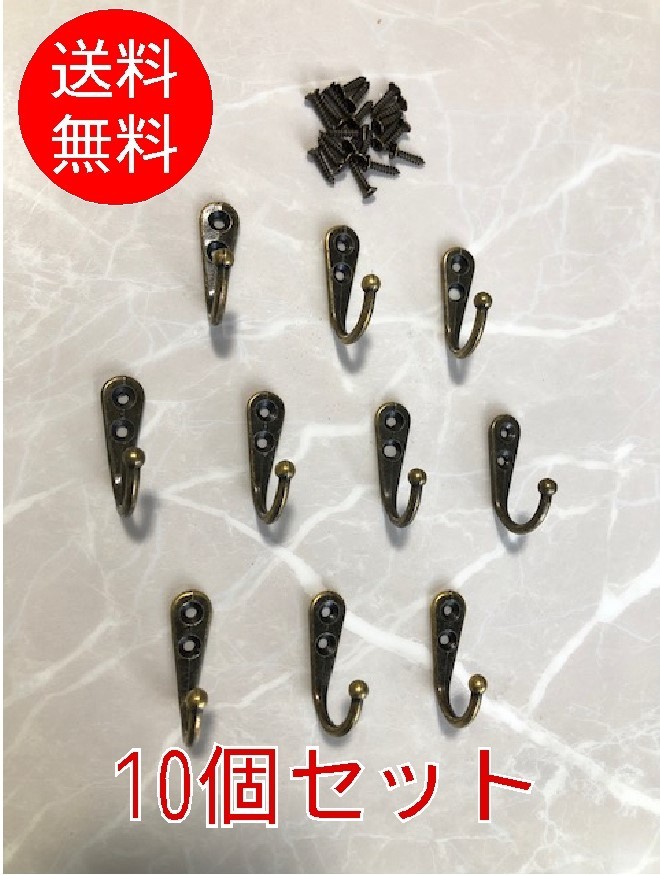 - 【10個セット】■壁掛けフック 金具 FU-03■アンティーク ブロンズ 帽子 おしゃれ 洋服 ヨーロッパ 古民家 ヨーロピアン レトロ インテリア