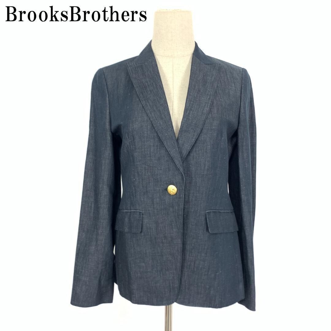 - LA5777 ブルックスブラザーズ テーラードジャケットBrooksBrothers デニムインディゴブルー コットン ネイビー 半裏仕立て 綿 リネン 紺 0