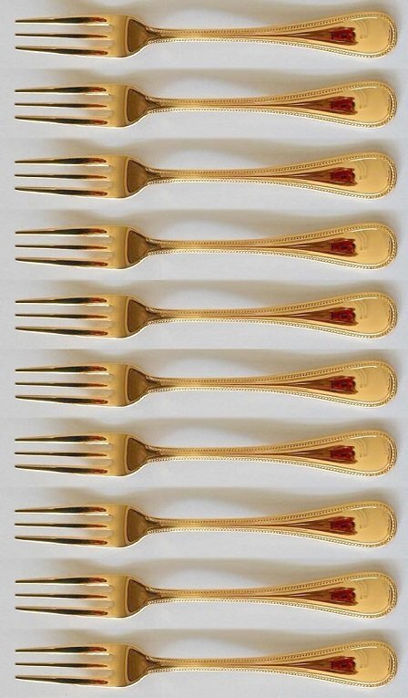 - ☆ラッキーウッド24金仕上フレンチアクセントヒメフォーク10本高級18-10ステンレス使用24金仕上げ日本製新品