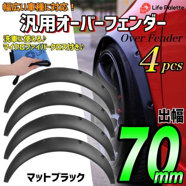 > 洗車タオル付 汎用 出幅 70mm オーバーフェンダー 4枚 カプチーノ EA21R EA11R ジムニー JB23W JA12V JA22W JA11V ハイエース シルビア 黒