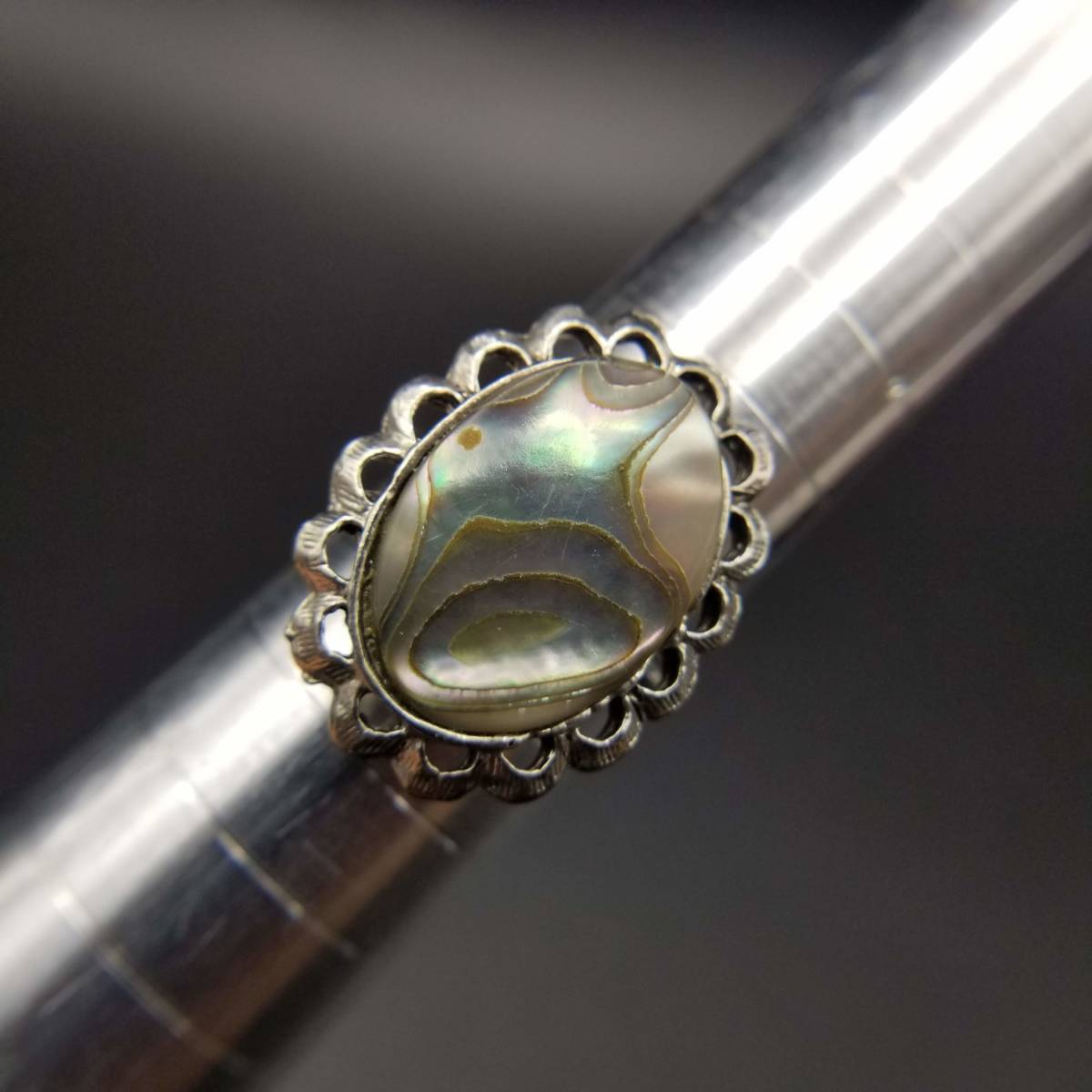 - シェルトップ フリルリム オーバル ヴィンテージ リング 指輪 シルバートーン レトロ ファッションジュエリー 6Y-F