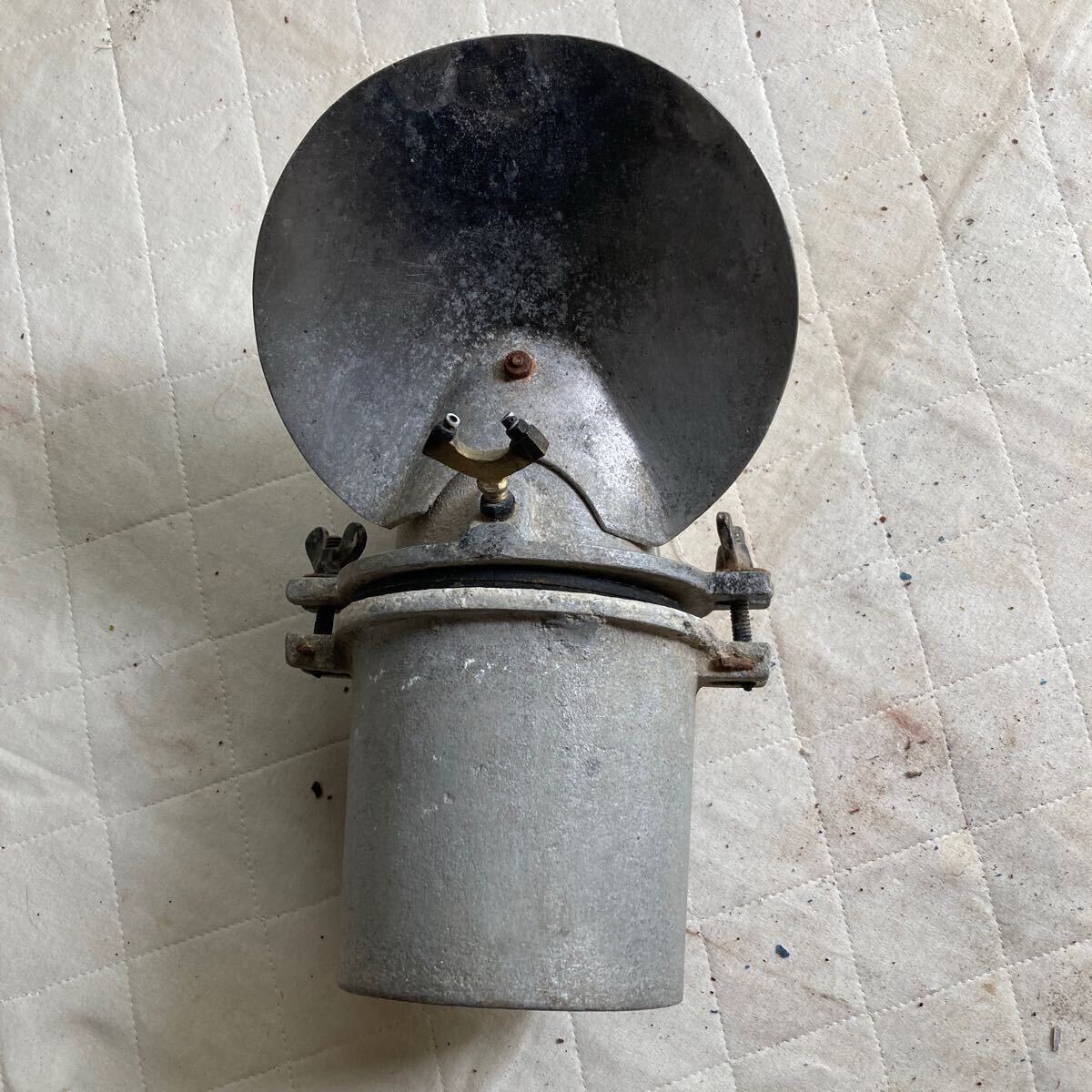 > レトロな昭和二十二年四月二五日本間商店.カ-バイトランプです.材質は鉄.鋳物.真鍮.ゴム.全て純正.箱付き.完品.重さ.約1.8kgです.