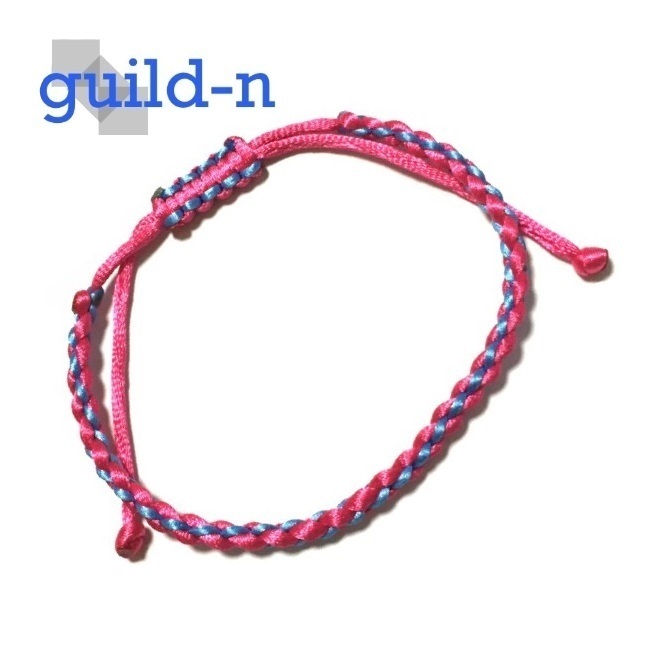 - guild-n ★ アクア + ホットピンク ショッキングピンク 水色 細目 組紐 サテン ミサンガ アンクレット ブレスレット 腕 足用