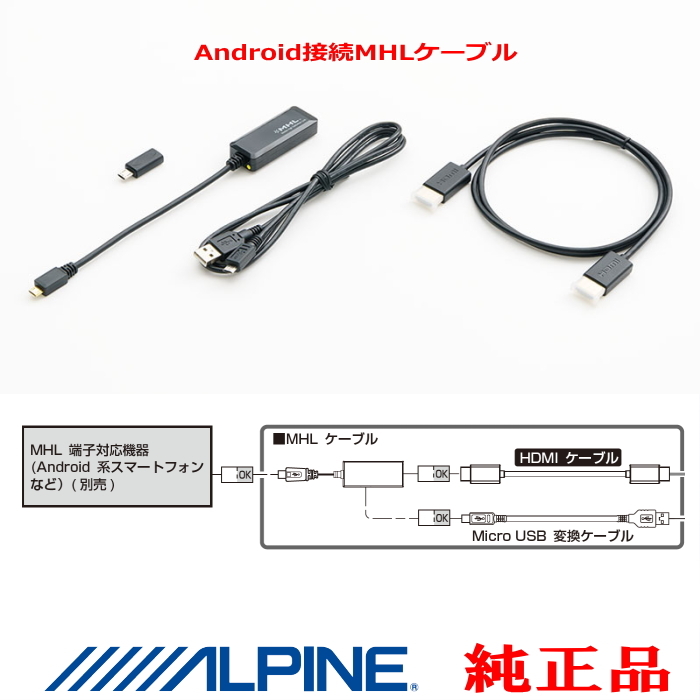 - ALPINE 『 アルパイン 』 純正 Android 系スマートフォン など MHL 端子対応機器 HDMI ケーブル 変換用コードセット (AH05