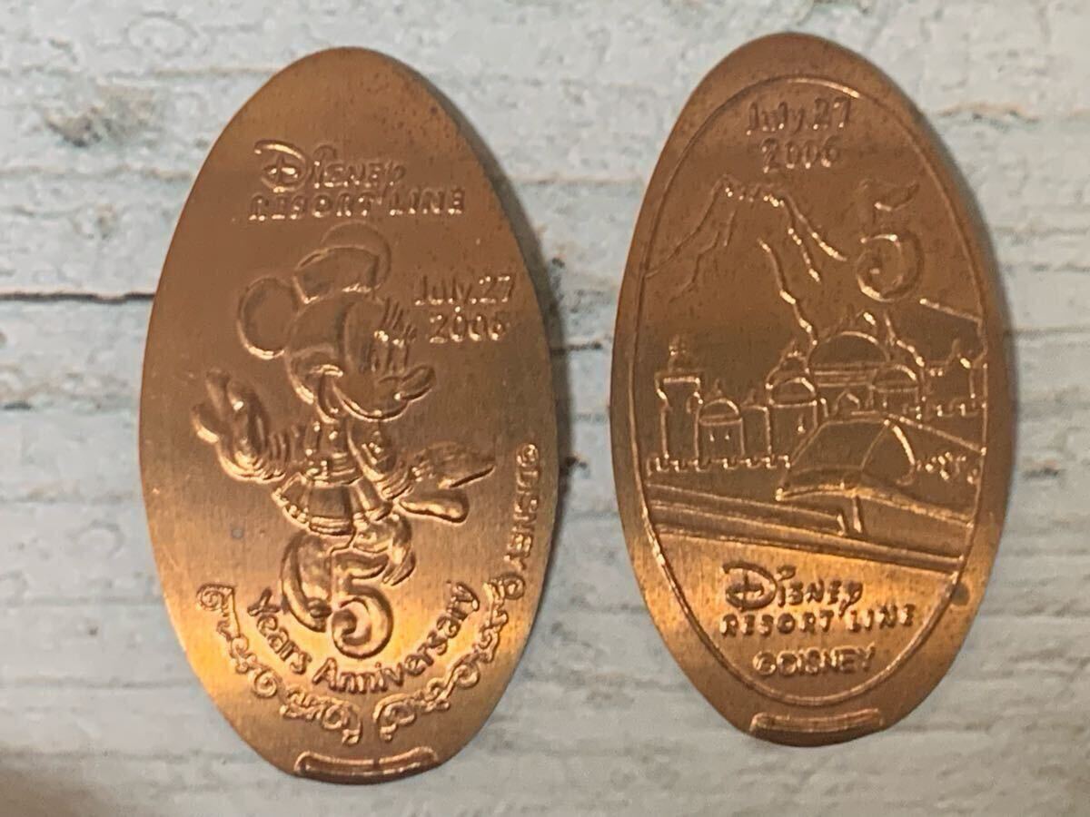 - ディズニー スーベニアメダル 2枚 2006年 7月 27日 東京ディズニーリゾートライン 5周年 ミニー 山 マウンテン