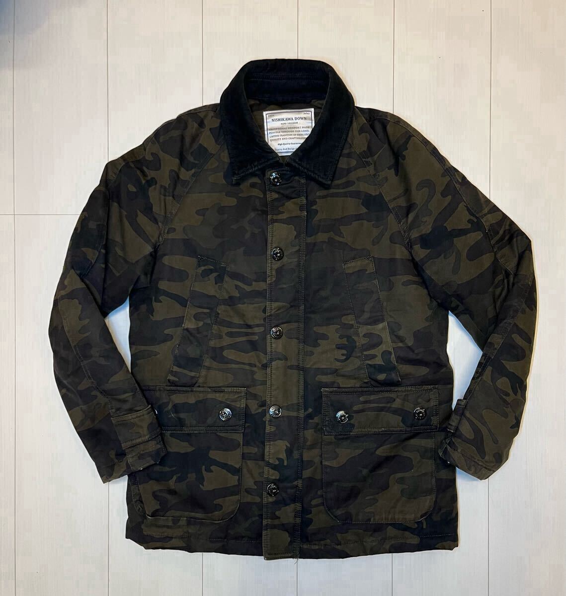 > ナノユニバース nano・universe/西川ダウンジャケット 東京西川 Sサイズ ミリタリー 迷彩 キルティング