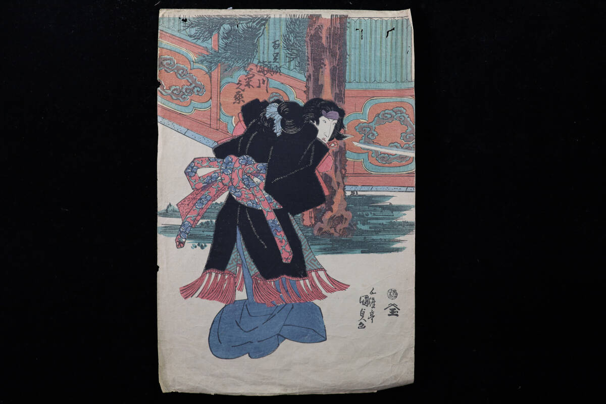 > ◇雅◇ 真作保証 歌川国貞 「百足姫 瀬川菊之丞」 木版画 浮世絵 錦絵 美人画 歌舞伎絵 役者絵 /MG.25.4 [I47.40] OXXX66