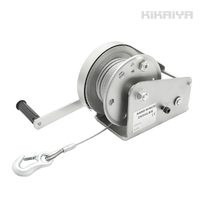 - ハンドウインチ ウィンチ オートブレーキ付 大 ワイヤー15m 牽引能力1180kg 手動ウインチ KIKAIYA