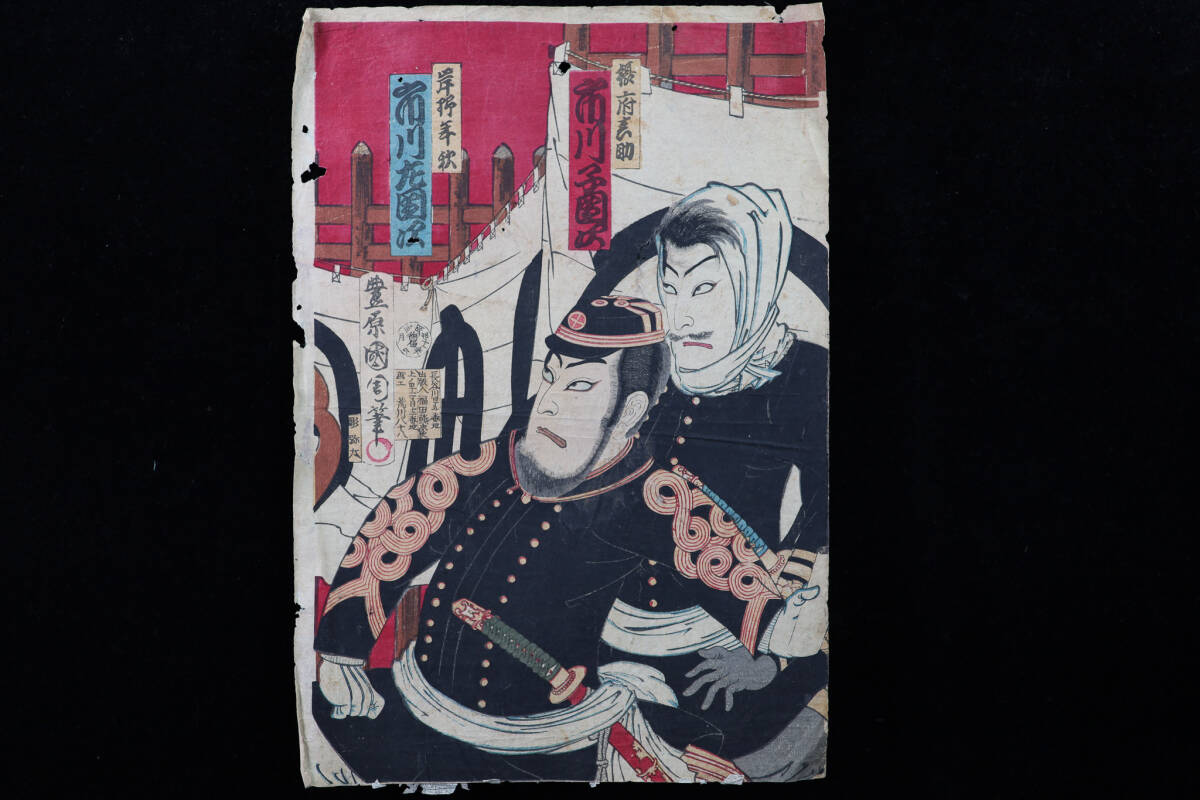 - ◇雅◇ 真作 西南戦争 豊原国周 「西南雲晴朝東風」 時代物 木版画 浮世絵 錦絵 役者絵 武者絵 /MG.25.4 [I47.54] OXXX66