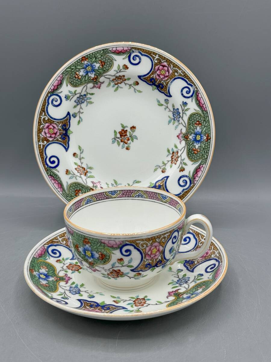 > ミントン トリオ カップ&ソーサー ケーキ皿 シワノズリ エナメル 花 (#-7-A) カップアンドソーサー