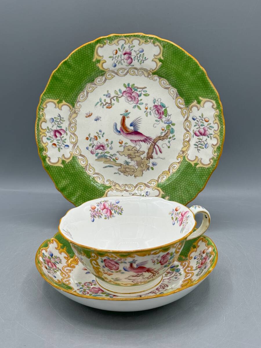 > ミントン トリオ カップ&ソーサー ケーキ皿 コカトリス エナメル 花 (#-7-A) カップアンドソーサー
