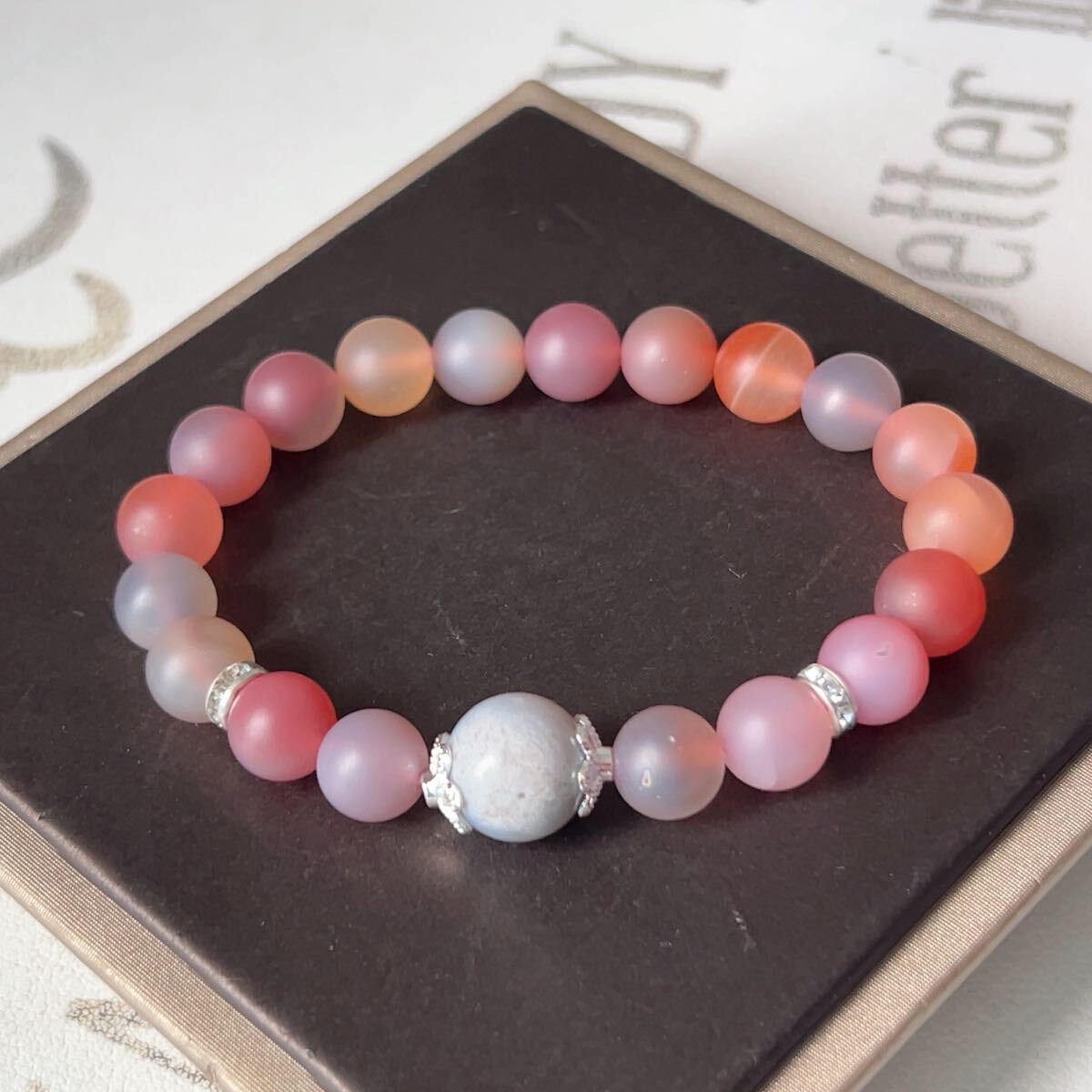 - ◇塩源瑪瑙+桜瑪瑙◇メノウ◇アゲート◇ブレスレット◇パワーストーン◇天然石◇巾着袋付き◇プレゼントにも012B51611