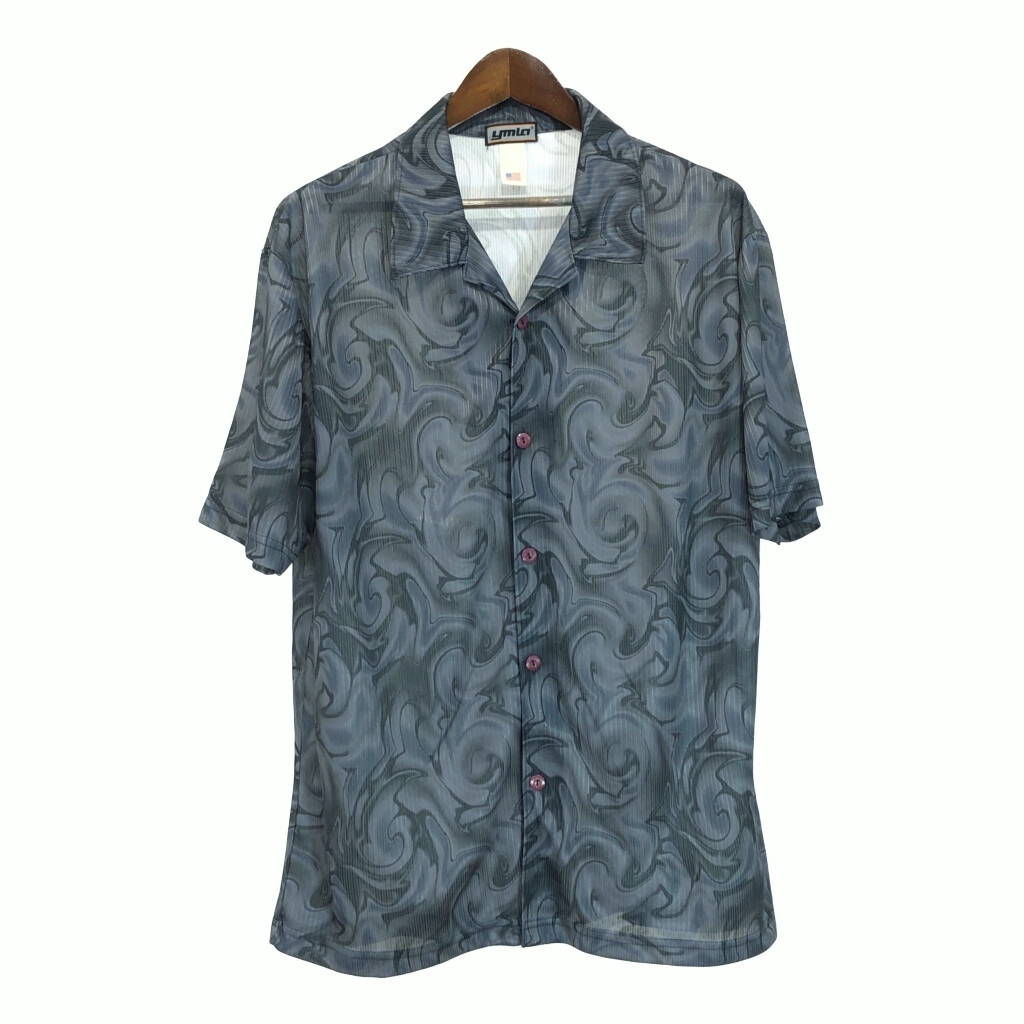 > USA製 ymlo オープンカラー シアーシャツ 総柄 グリーン(メンズ X-LARGE)中古 古着 U2794