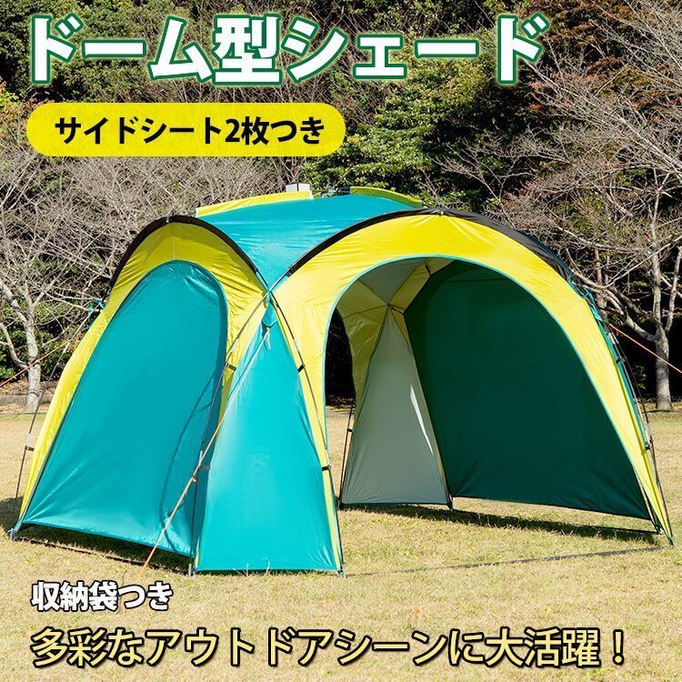 - ドームテント テントセット ドーム型 キャンプテント サイドシート2 枚付き ランタンフック 収納袋付き アウトドア BBQ ビクニック 公園