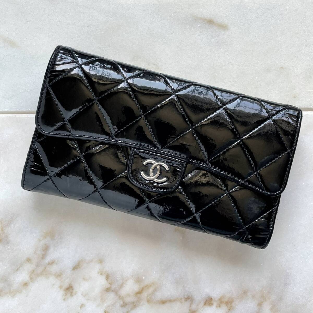 - CHANEL シャネル マトラッセ パテント フラップ 長財布 ブラック